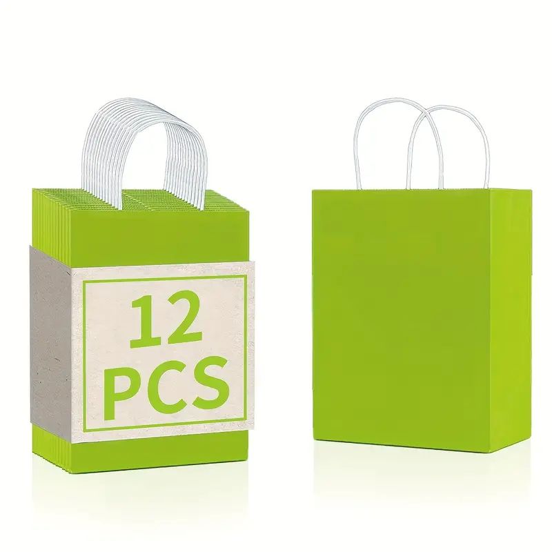 8/12/25/50/100/ pcs, Natural Light Green Gift Bags With Cowhide Paper Bags With Handles, 6.3*3.15*8.26 Inches, For Birthday Parties, Birthday Gift Bags, Wedding Gift Bags, Small Business Supplies, Shopping Bag, Party Bag, Party Gift Bag, Craft Tote Bag