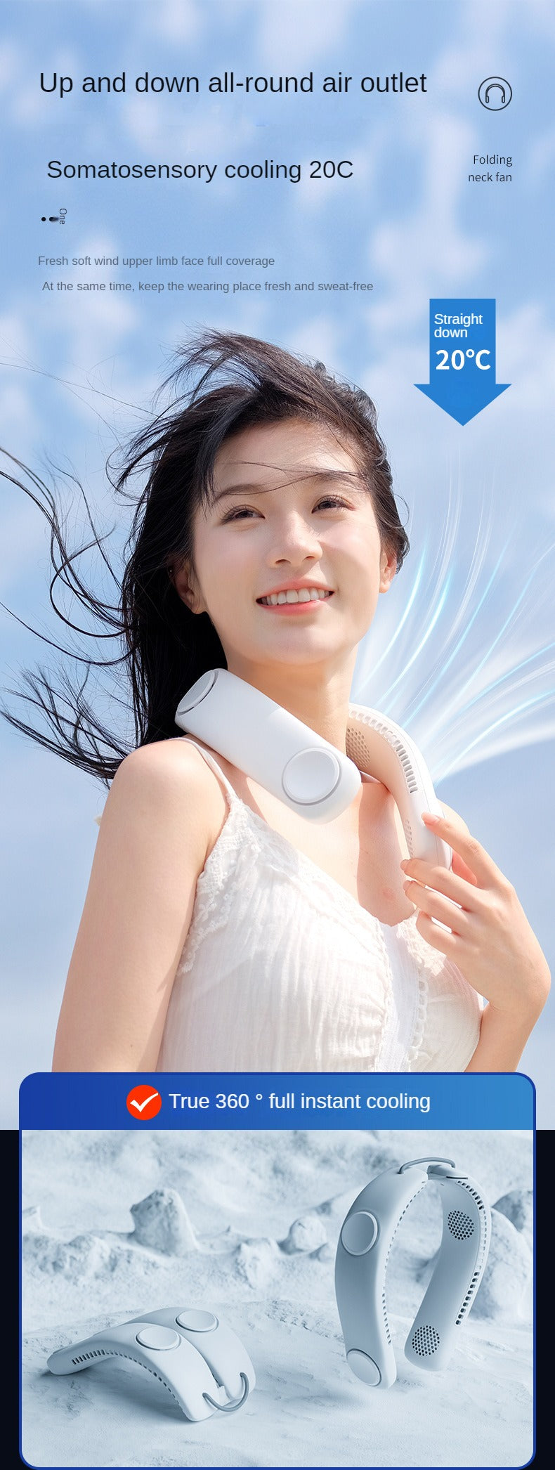 Four leaf hanging neck fan