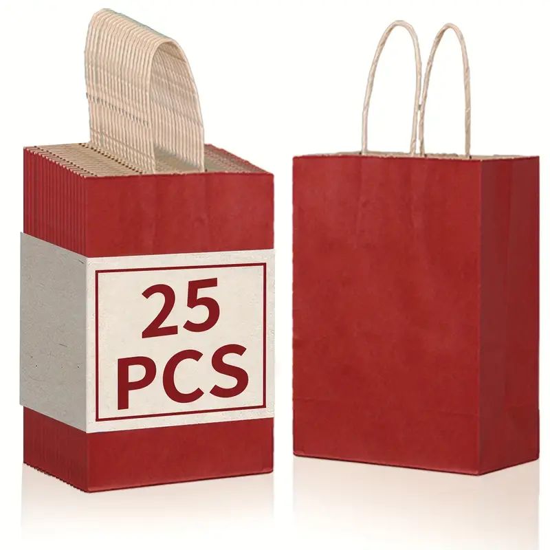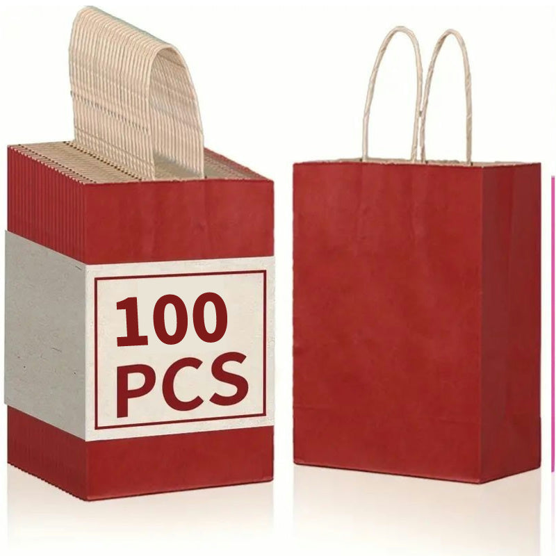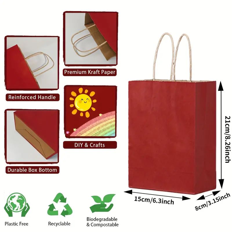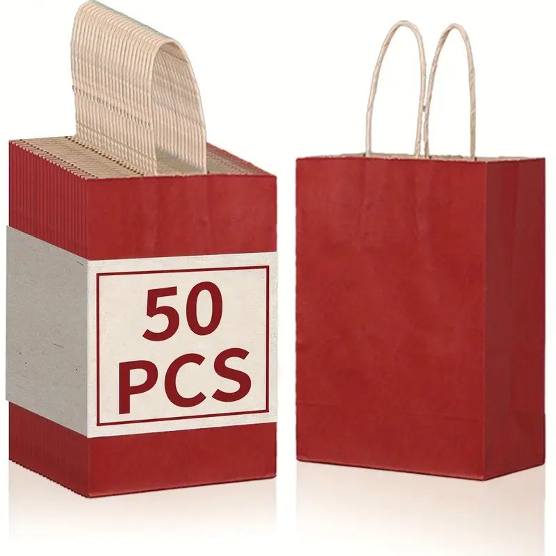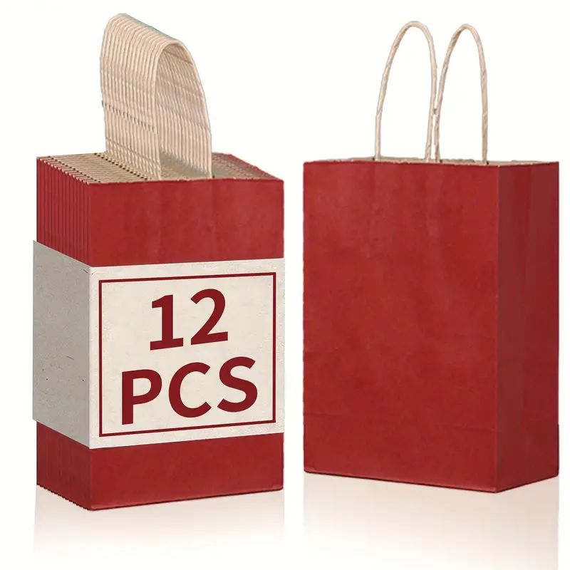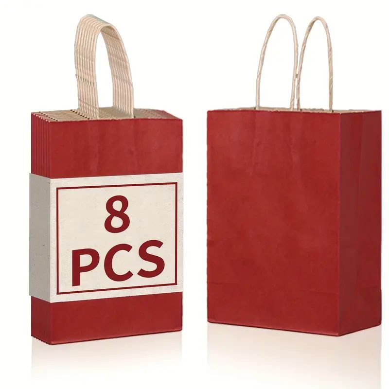 8/12/25/50/100pcs, Christmas New Year Halloween Wine Red Gift Bag, Kraft Paper Material With Tote, 6.3*3.15*8.26 Inches, Wedding Tote Bag, Birthday Gift Bag, More Suitable For Various Festival Party Gift Bags, Shopping Bag, Party Bag, Party Gift Bag