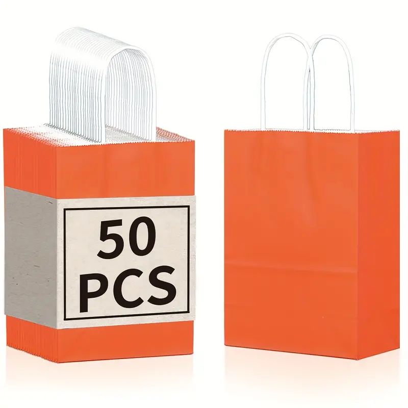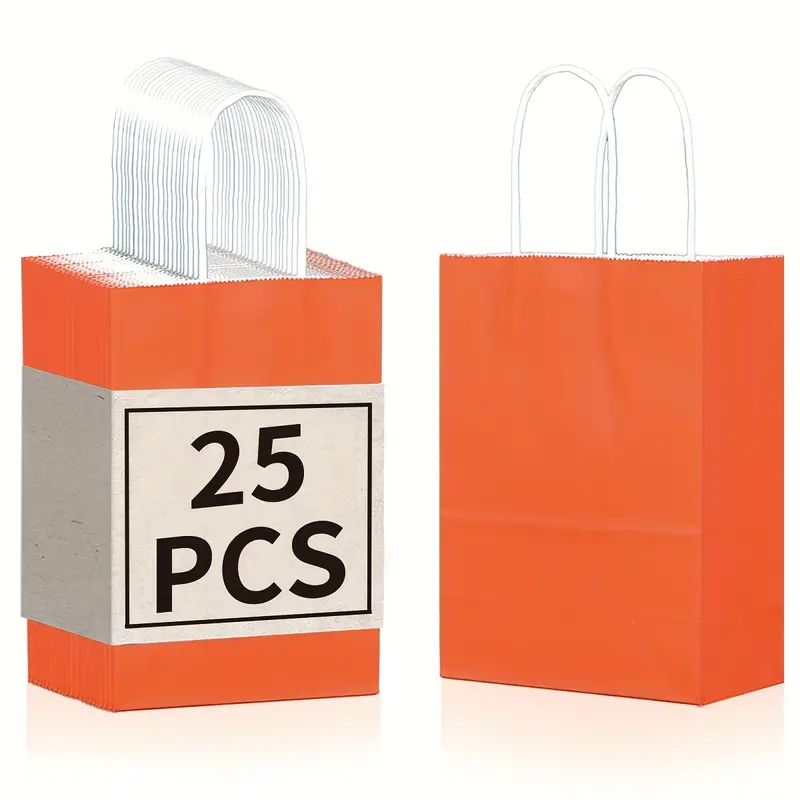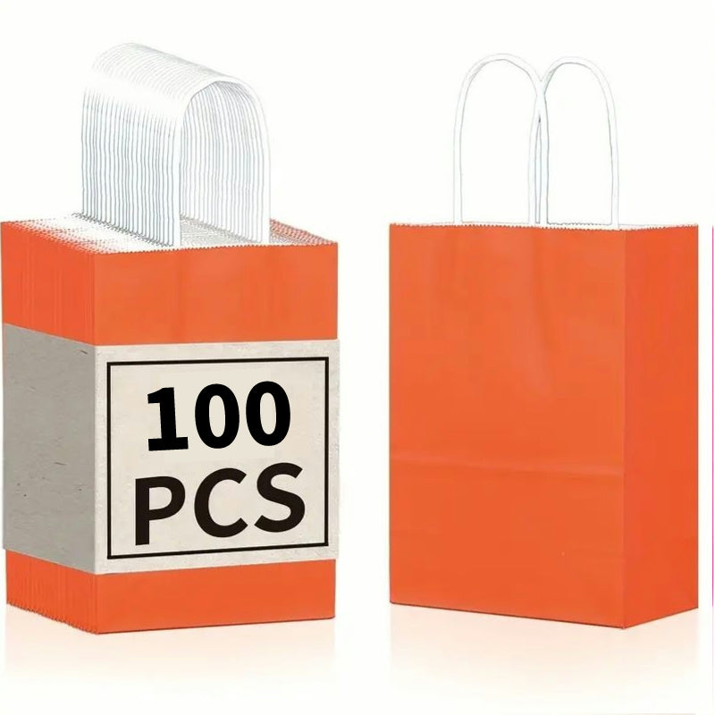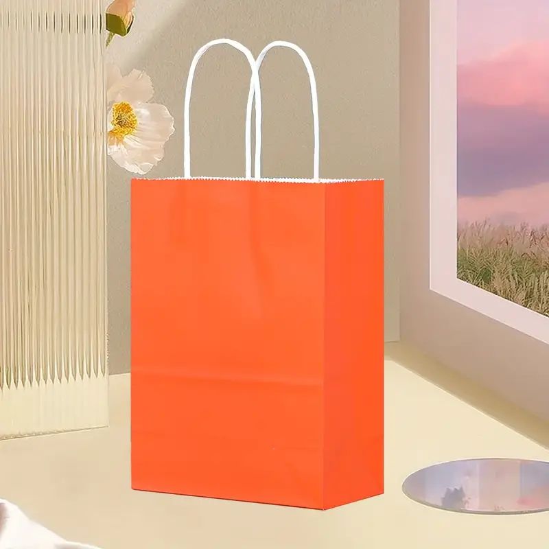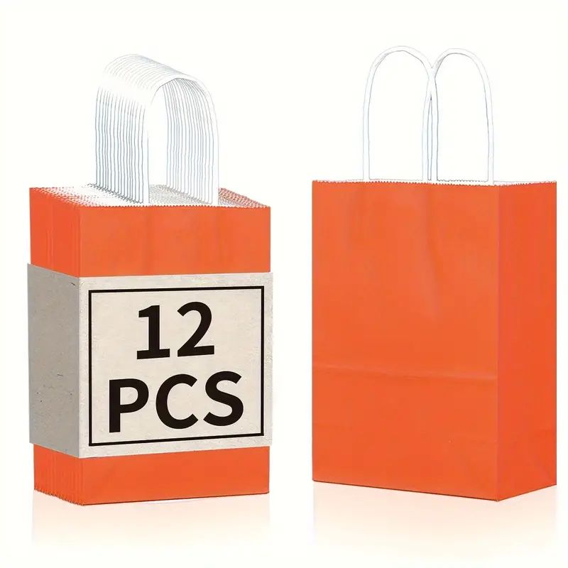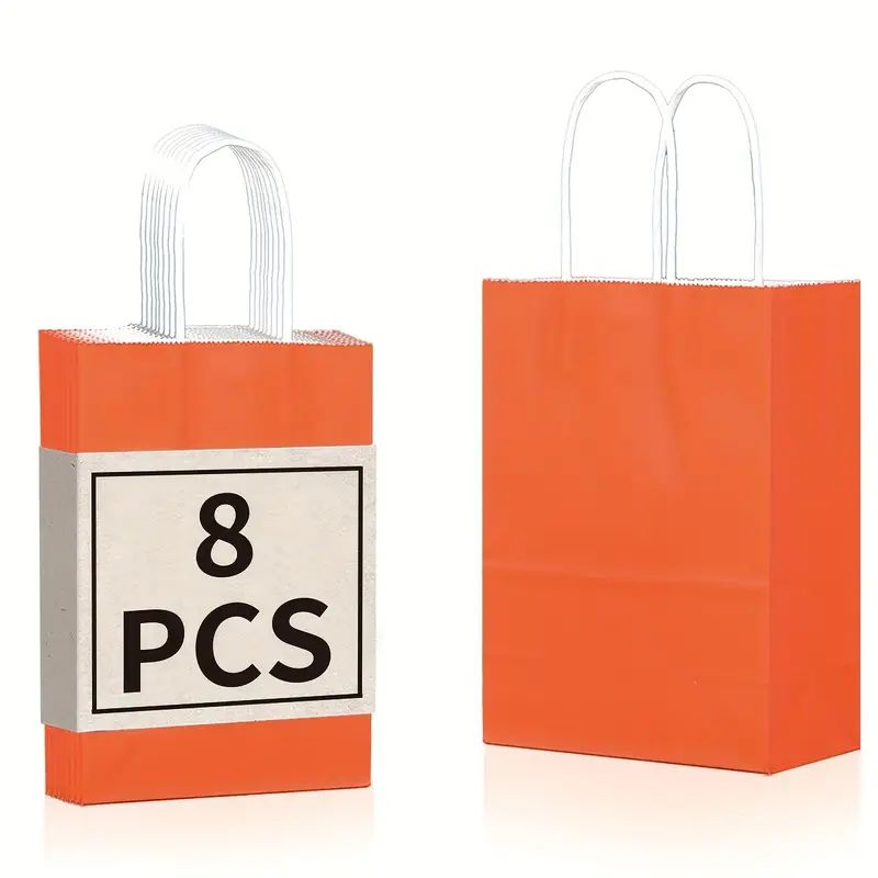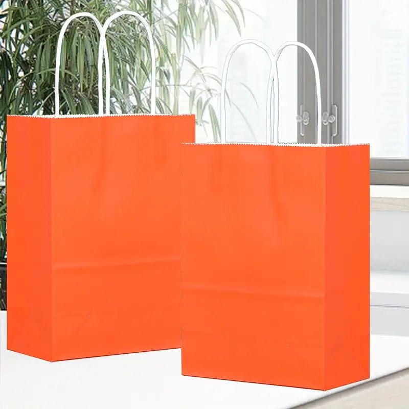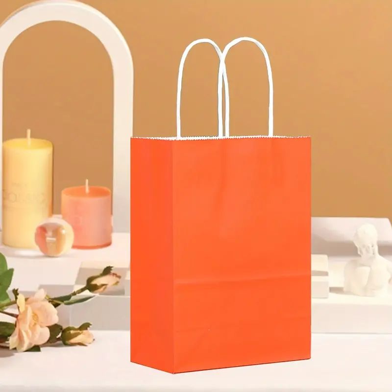 8/12/25/50/100 pcs, Lively And Vibrant Orange Gift Bags, Gift Bags More Suitable For Party Events, Kraft Paper Material With Tote, Wedding, Birthday, Festival Celebration, Bridal Shower, Small Business Supplies, Shopping Bag, Party Bag, Party Gift Bag