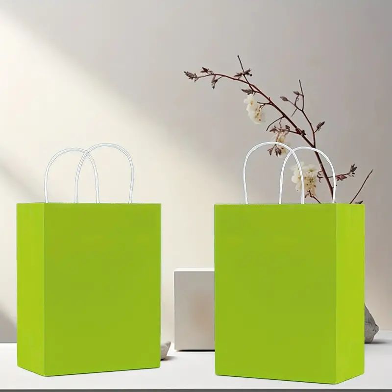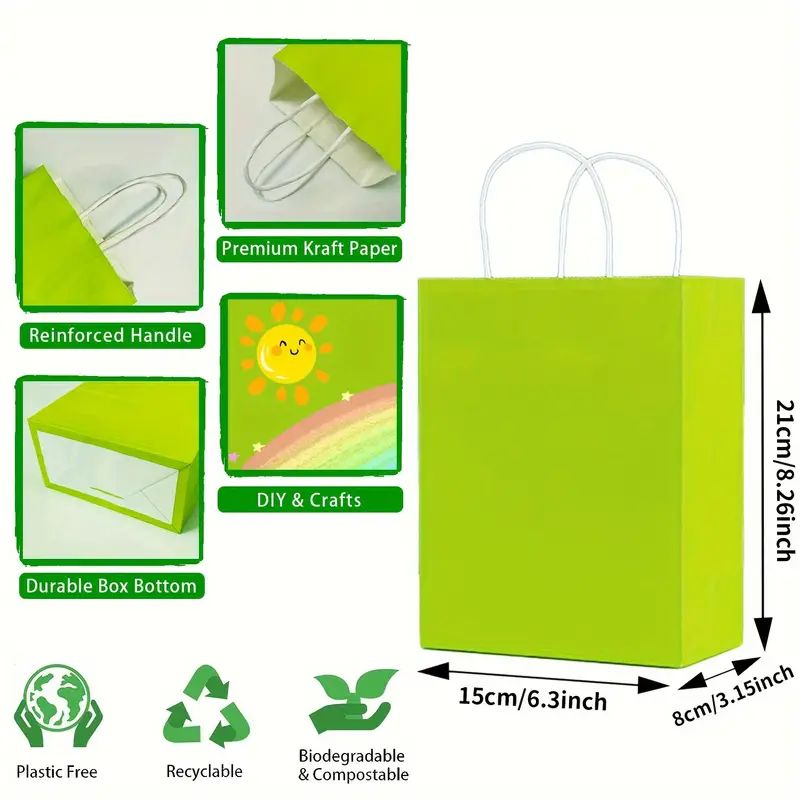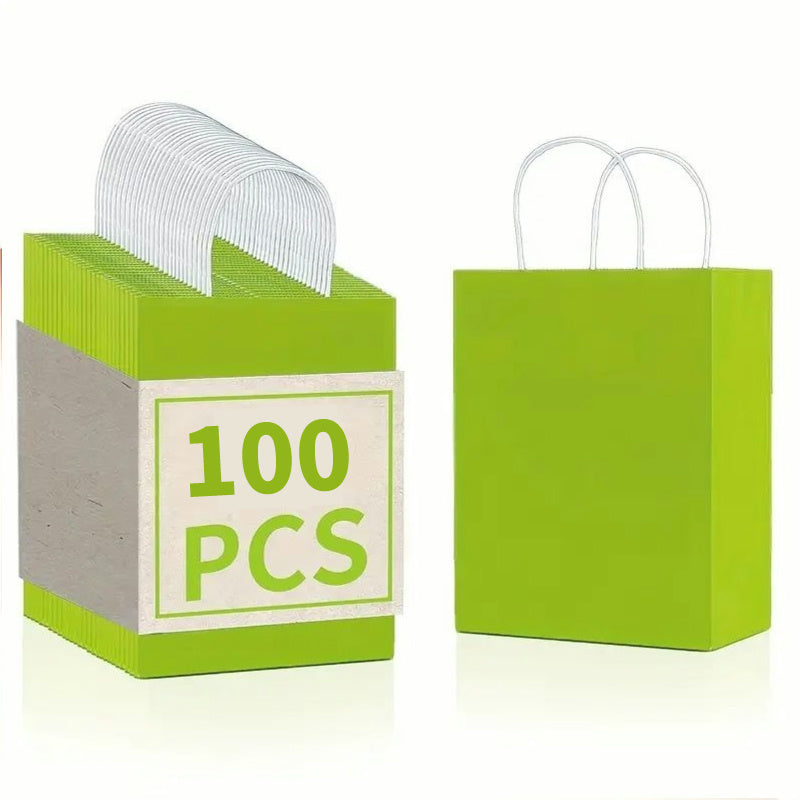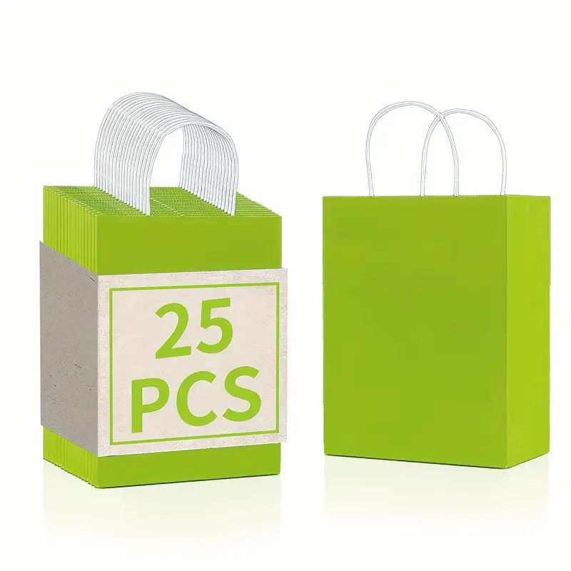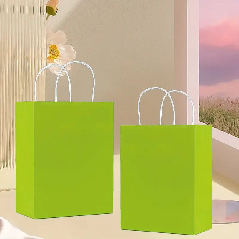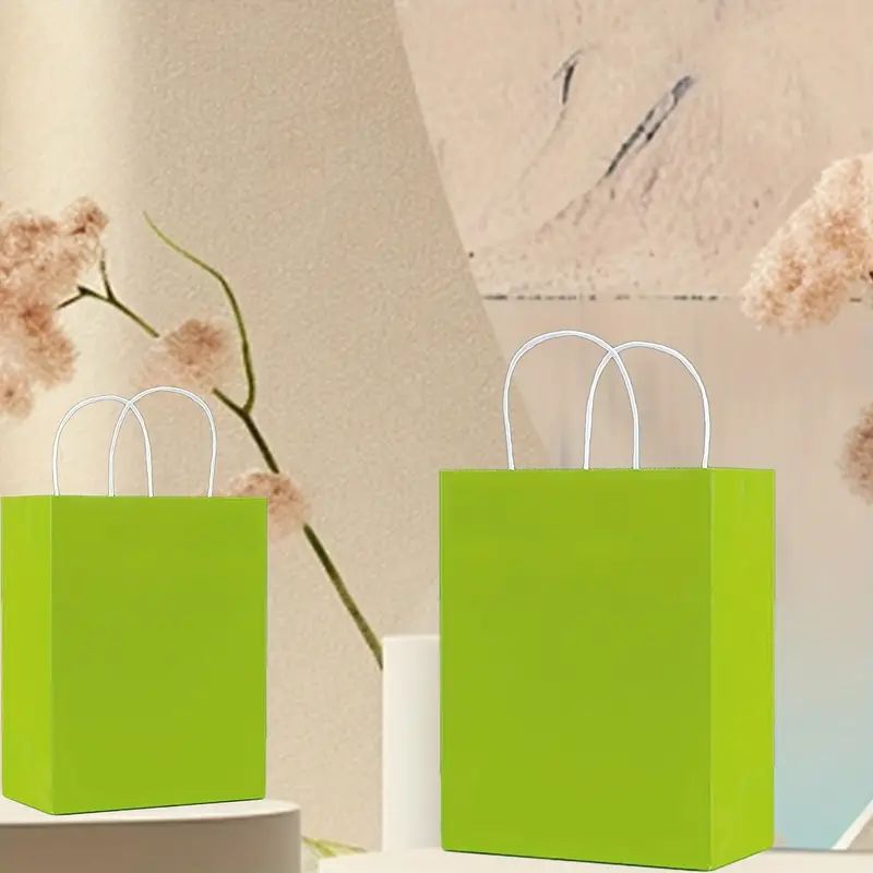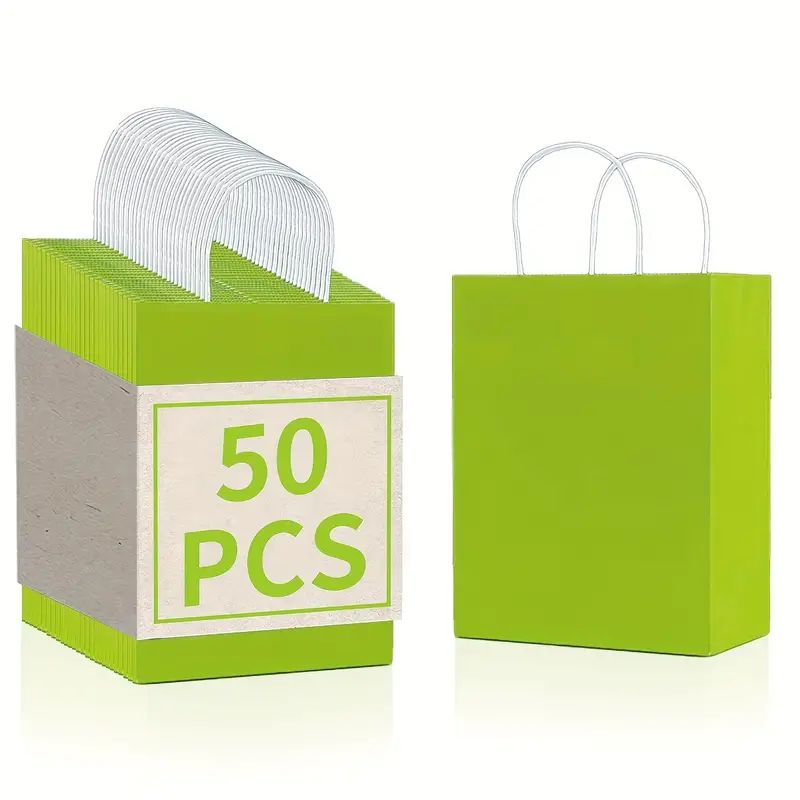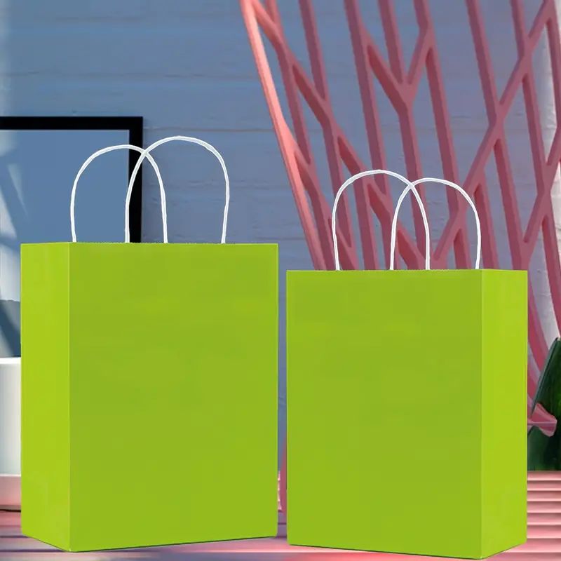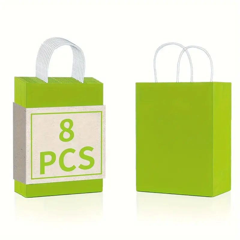 8/12/25/50/100/ pcs, Natural Light Green Gift Bags With Cowhide Paper Bags With Handles, 6.3*3.15*8.26 Inches, For Birthday Parties, Birthday Gift Bags, Wedding Gift Bags, Small Business Supplies, Shopping Bag, Party Bag, Party Gift Bag, Craft Tote Bag