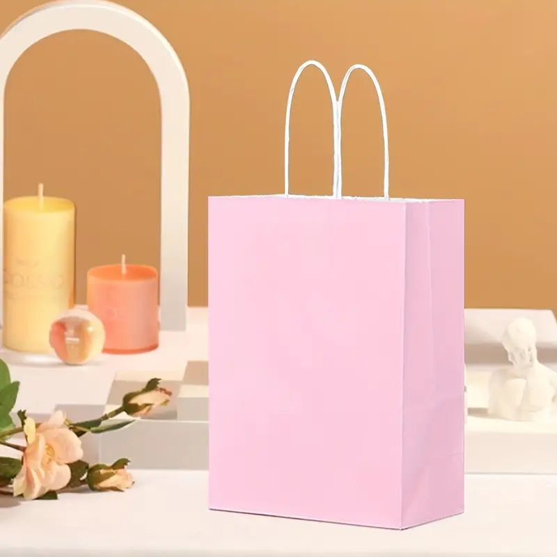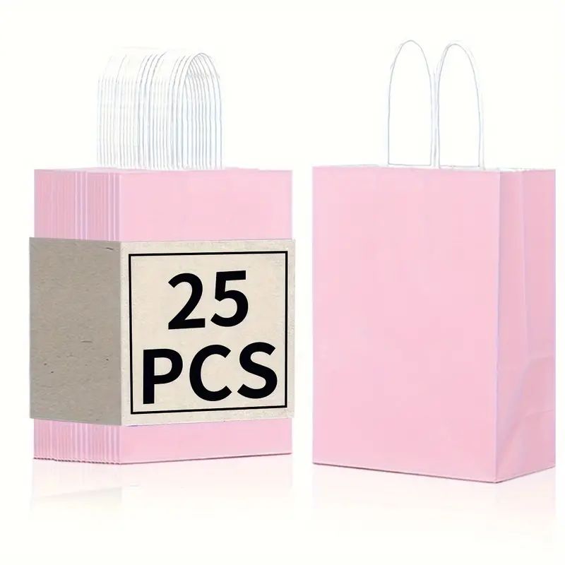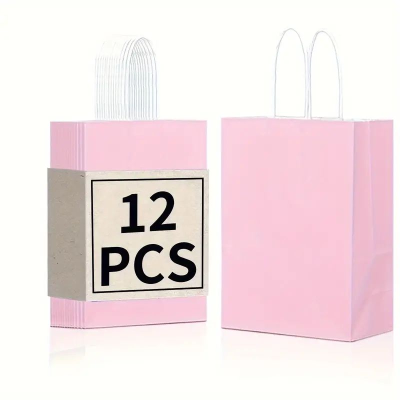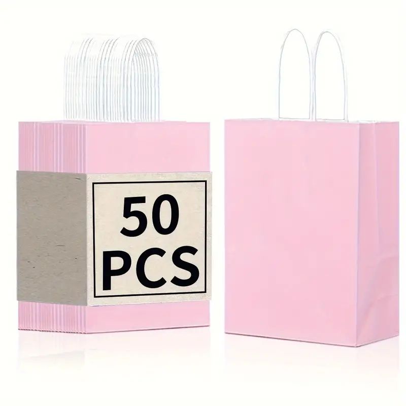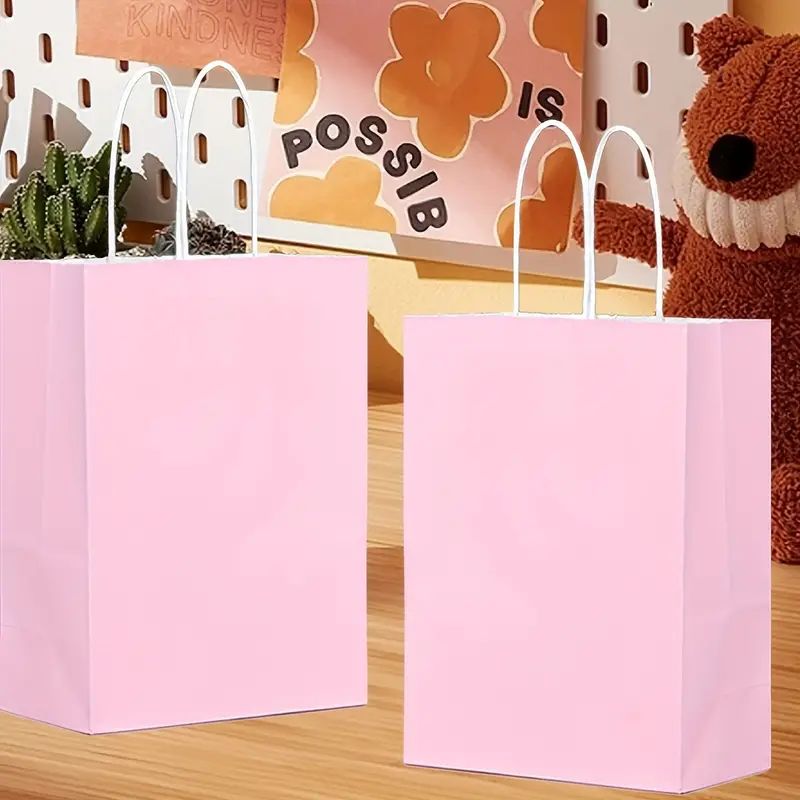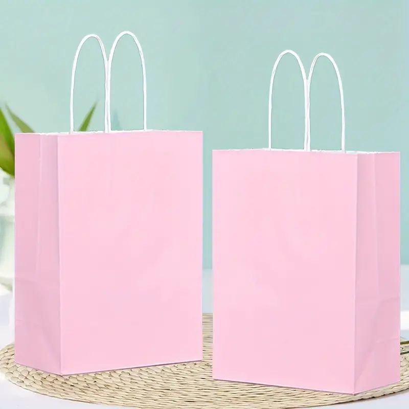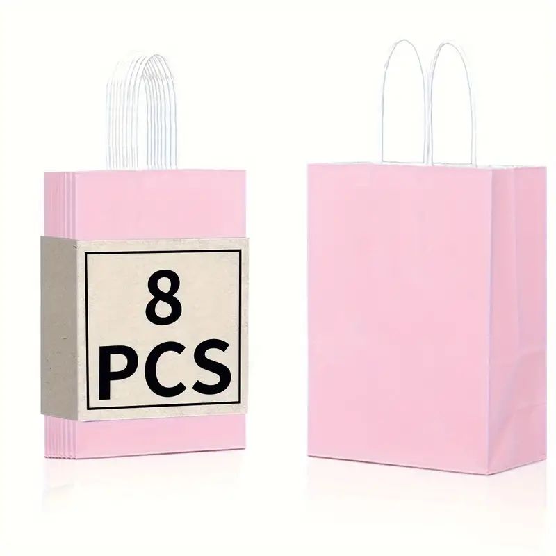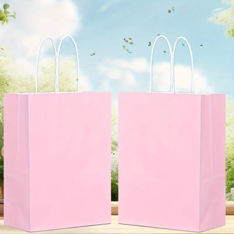 8/12/25/50pcs, Peach Pink Cute And Lively Handheld Paper Bags Gift Bags, Birthday Party Gift Bags, Wedding Gift Bags, Bride's Gift Giving Meeting, Suitable For Various Festival Party Celebrations, Small Business Supplies, Shopping Bag, Party Gift Bag