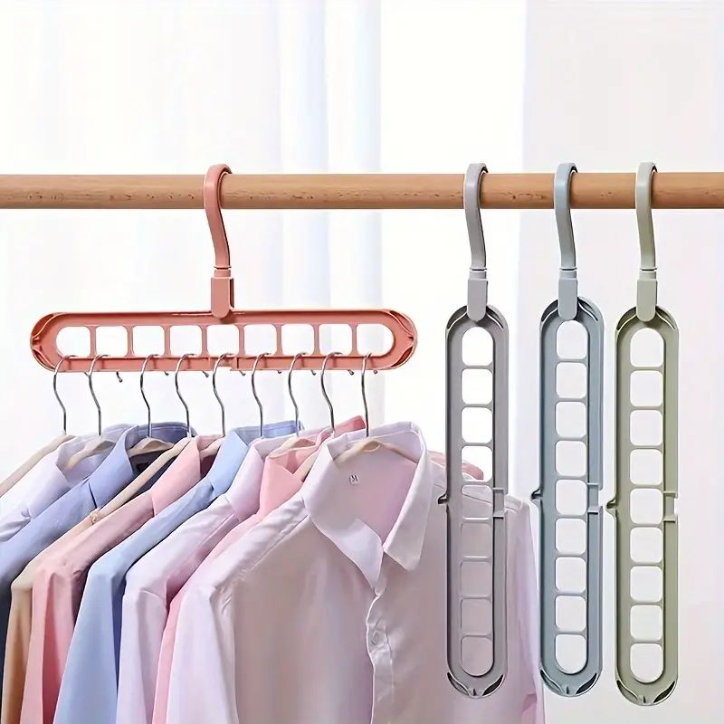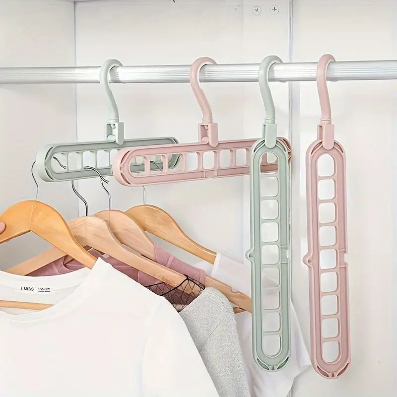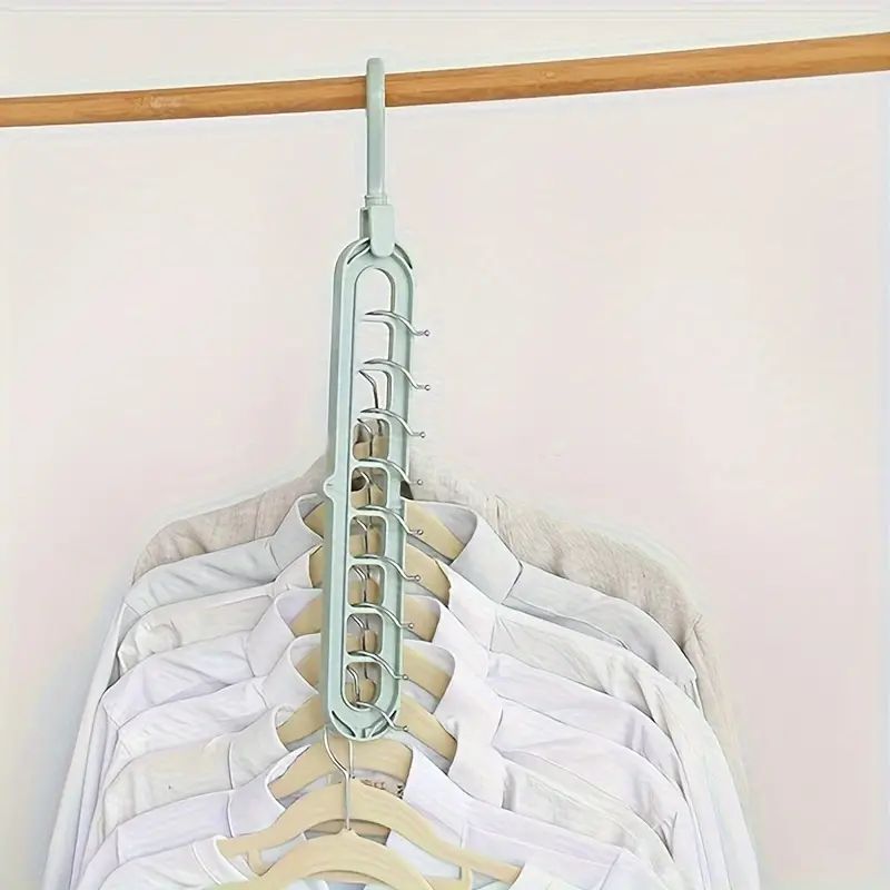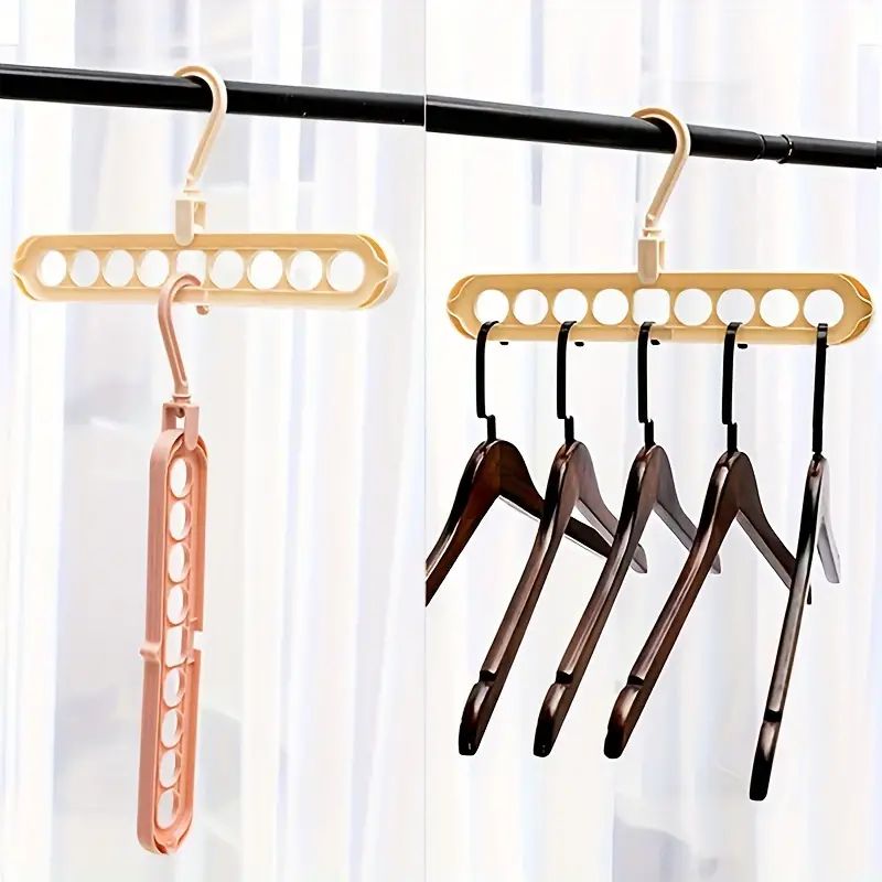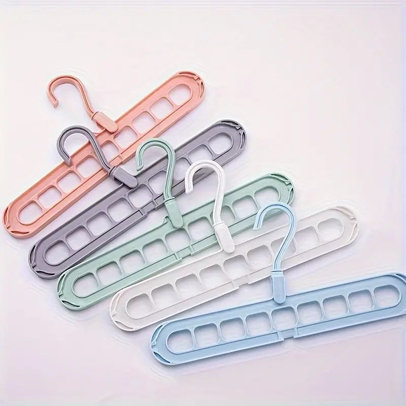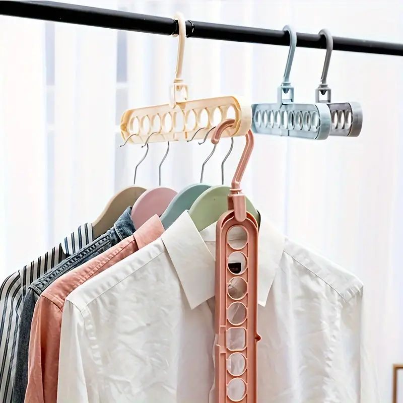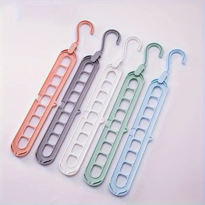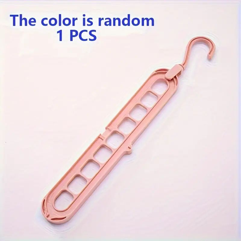 1pc Nine-hole Hanger, Multi-functional Household Clothes Hanger, Dormitory Folding Rotating Magic Drying Rack To Save Bedroom Storage Space, Random Color
