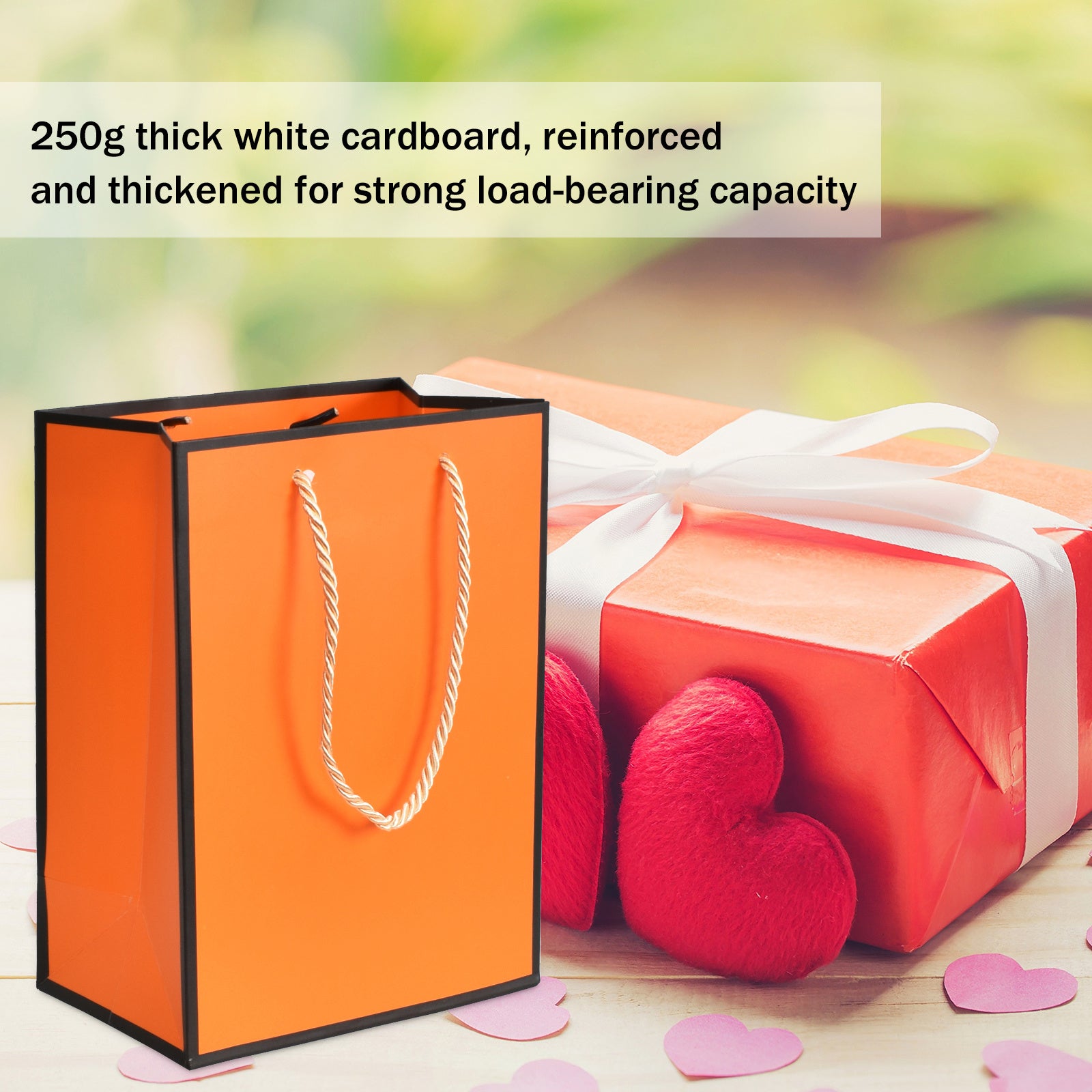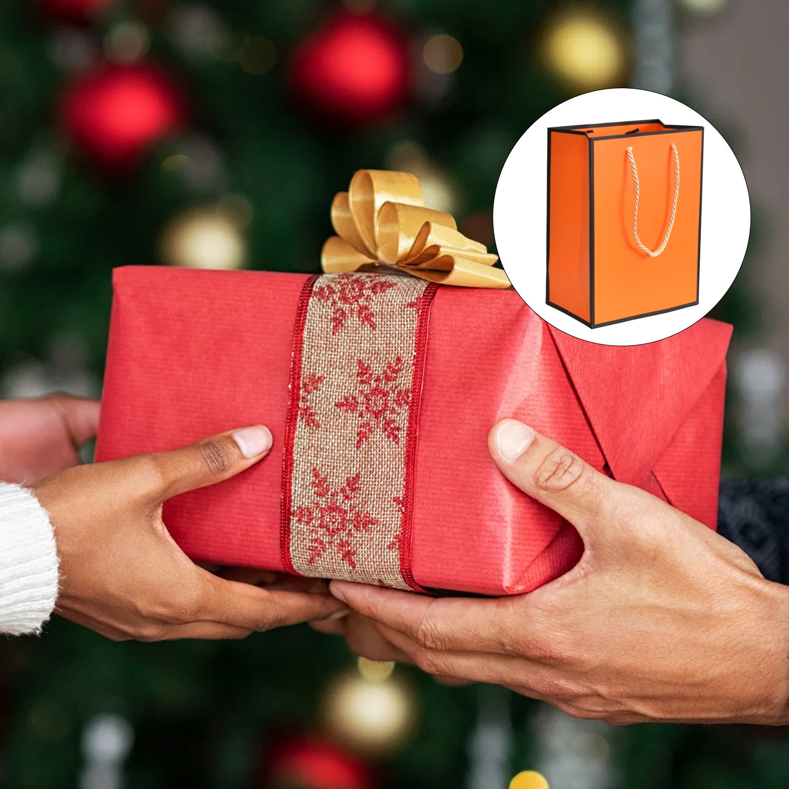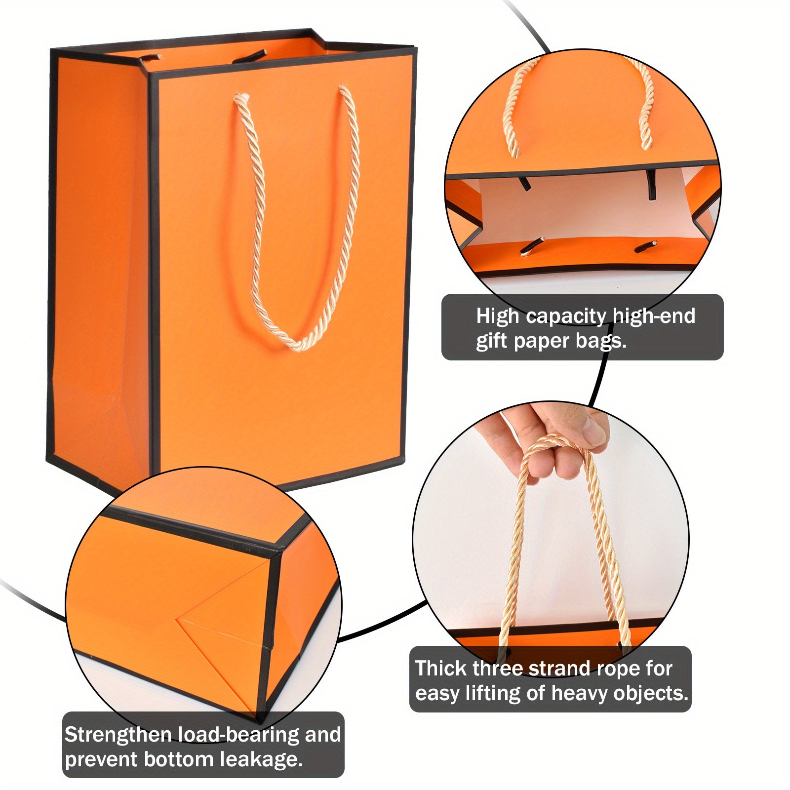 10pcs, Gift Bags Paper Bag Paper Bags With Handles Carrier Bag 7.09X3.94X9.06 Inch Reusable Kraft Paper Bags For Grocery Baking Merchandise Shopping Birthday Wedding Christmas Party (Orange)