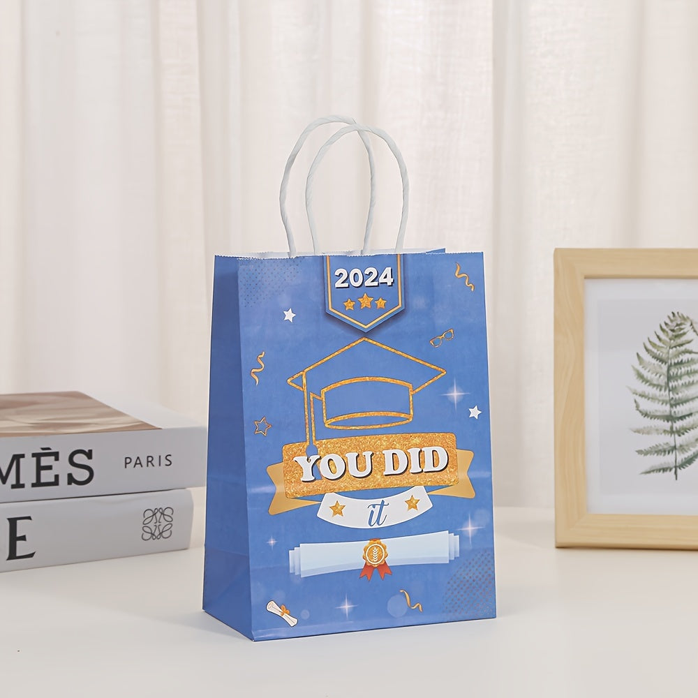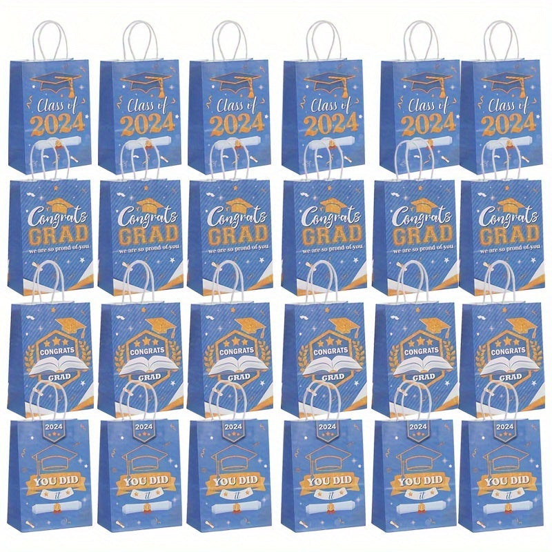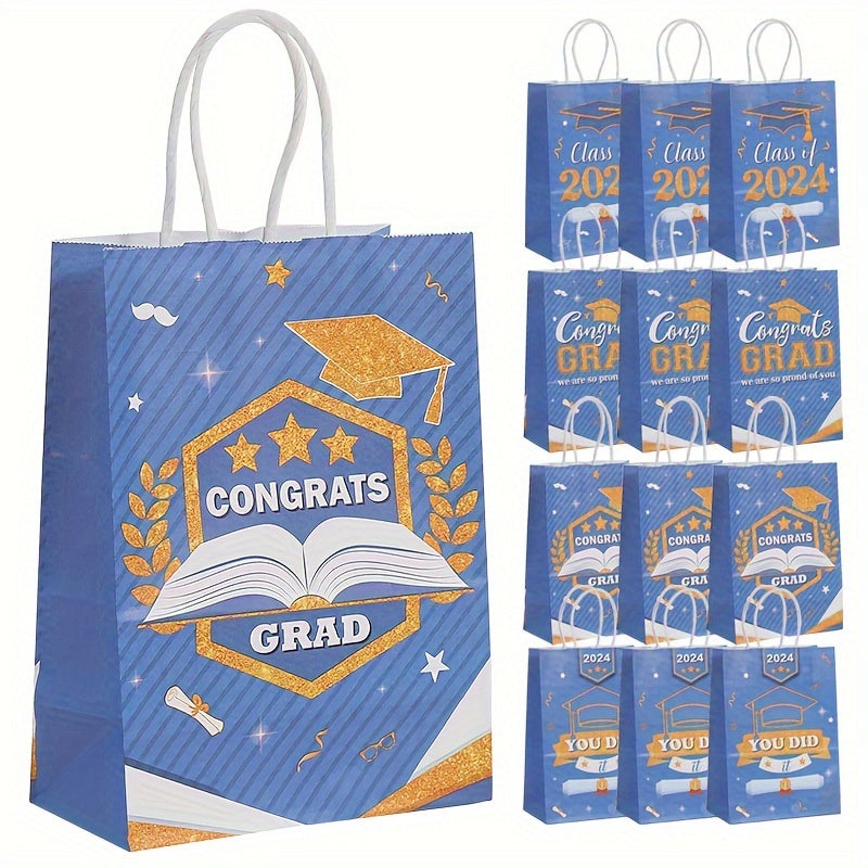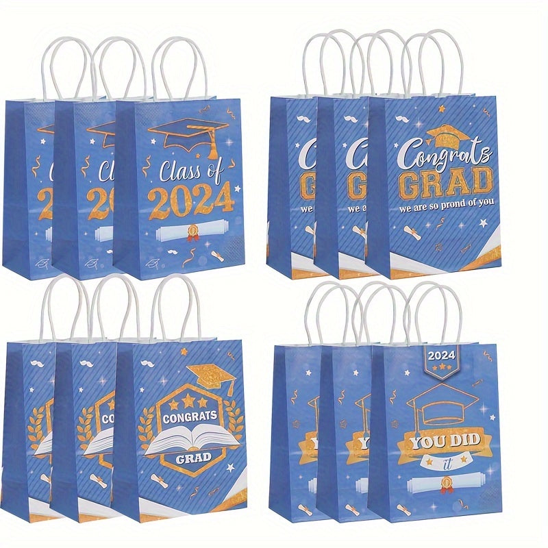 12/24pcs, Graduation Gift Bags,party Gift Bags, Graduation Season Handbags, Printed Packaging Bags, Shopping Bags, Blue Kraft Paper Bags For Graduation Season Theme Party Supplies Decoration
