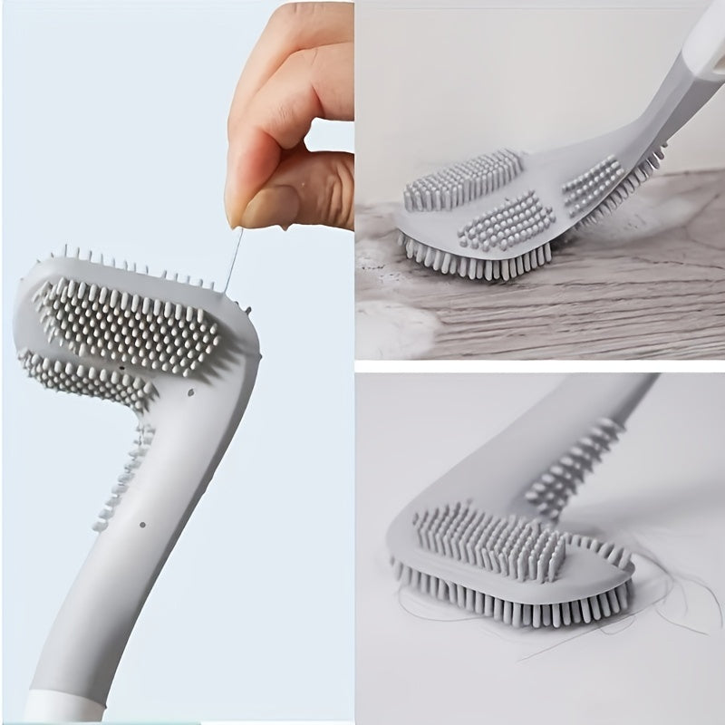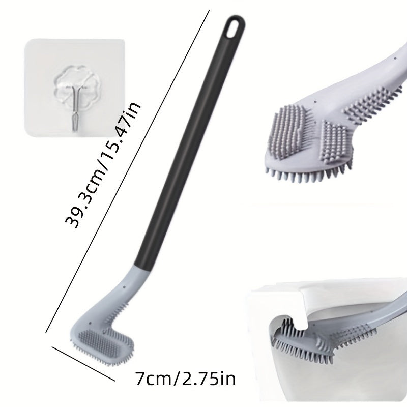 1pc Flexible Silicone Toilet Brush with Long Handle and 360 Degree Rotation - Wall Mounted Design for Easy and Effective Bathroom Cleaning