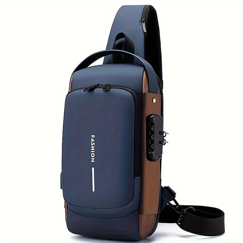 1pc New Password Lock Chest Bag, Travel Men's Multi Functional Leisure Going Out Motorcycle Large Capacity Backpack