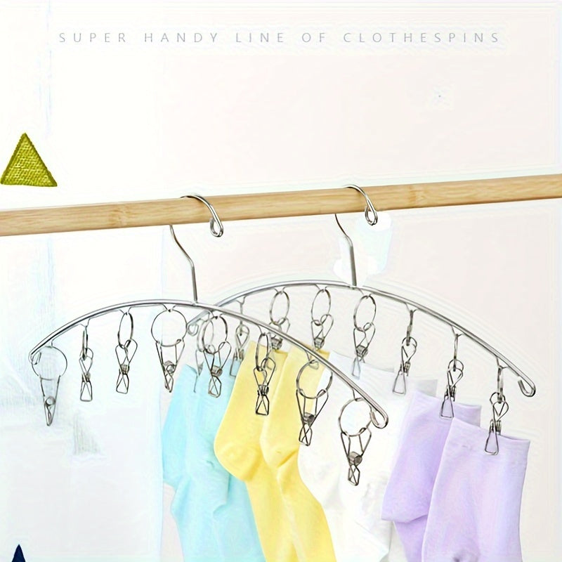1pc Stainless Steel Hanger With Clothespins, Hat Organizer Laundry Rack, Hat Organizer Hanger, Drying Rack For Drying Socks, Bra, Underwear, Socks, Gloves