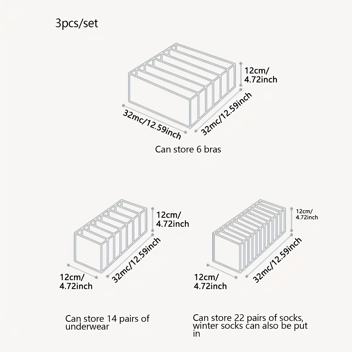 3pcs Multifunctional Fabric Underwear Storage Boxes - Wardrobe Organizer for Panties, Socks, and Bras