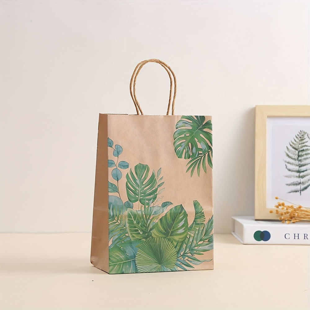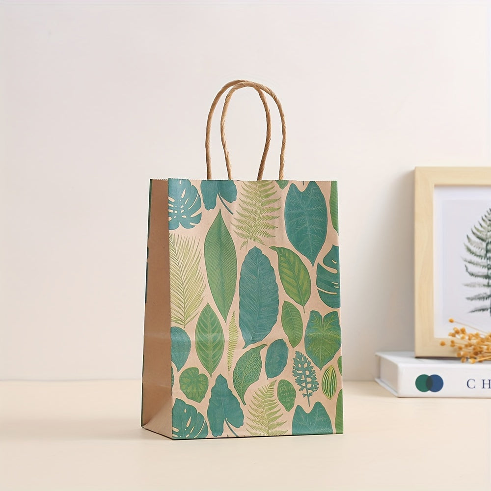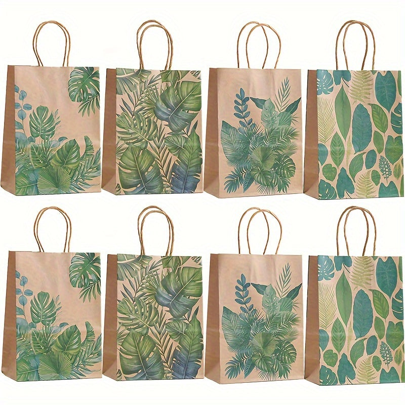8/16/24pcs, Green Plant Printed Kraft Paper Bags Birthday Party Gift Packaging Bags Tote Bags Snacks Cookies Candy Paper Bags Shopping Bags In Shopping Malls, Small Business Supplies, Shopping Bag, Party Bag, Party Gift Bag, Craft Tote Bag
