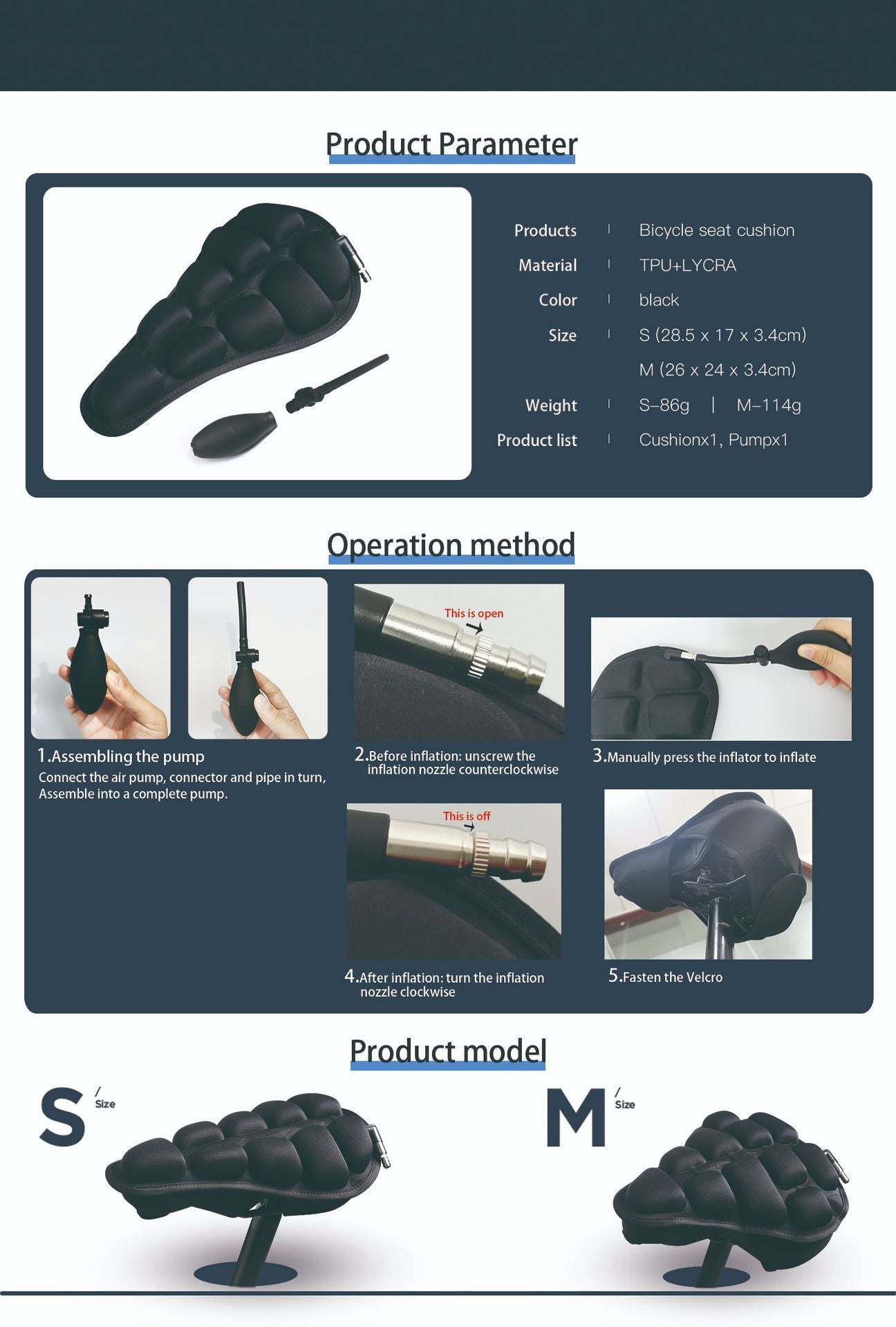 Bicycle Cushion Cover,Inflatable Airbag Thickened Sponge Silicone,Mountain Bike Riding Super Soft Seat Cover