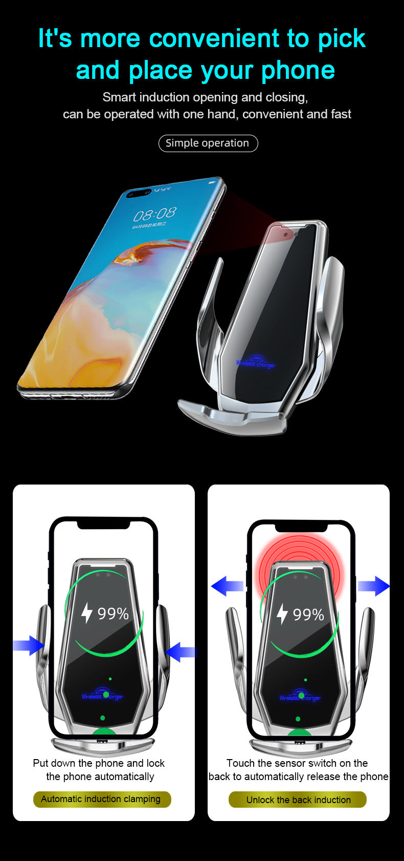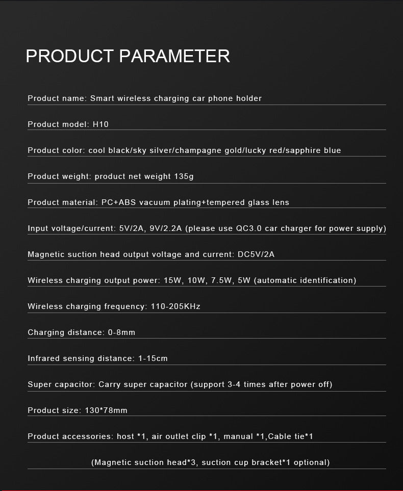 H10 automatic car wireless charger car phone holder