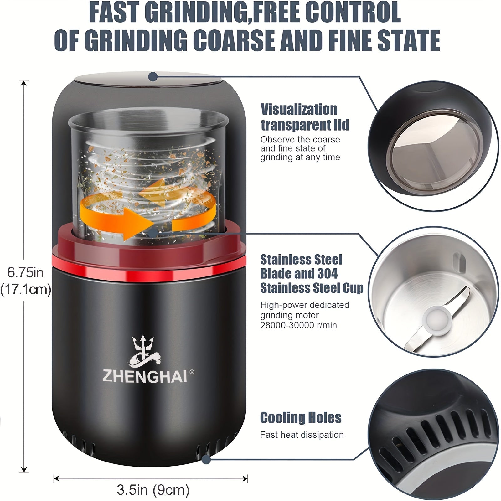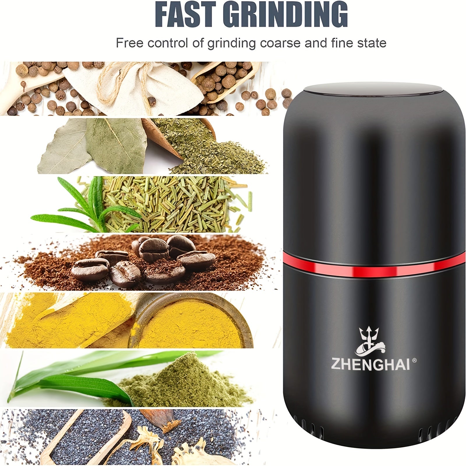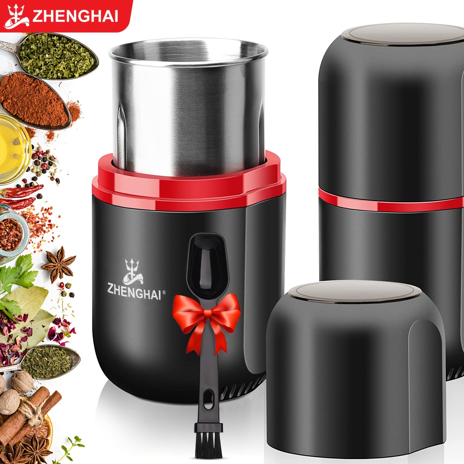 ZHENGHAI 4.23oz Large Capacity Electric Spice Grinder - Fast Grinding For Coffee Bean, Nuts, Dry Spices, Flower Buds - Includes Cleaning Brush